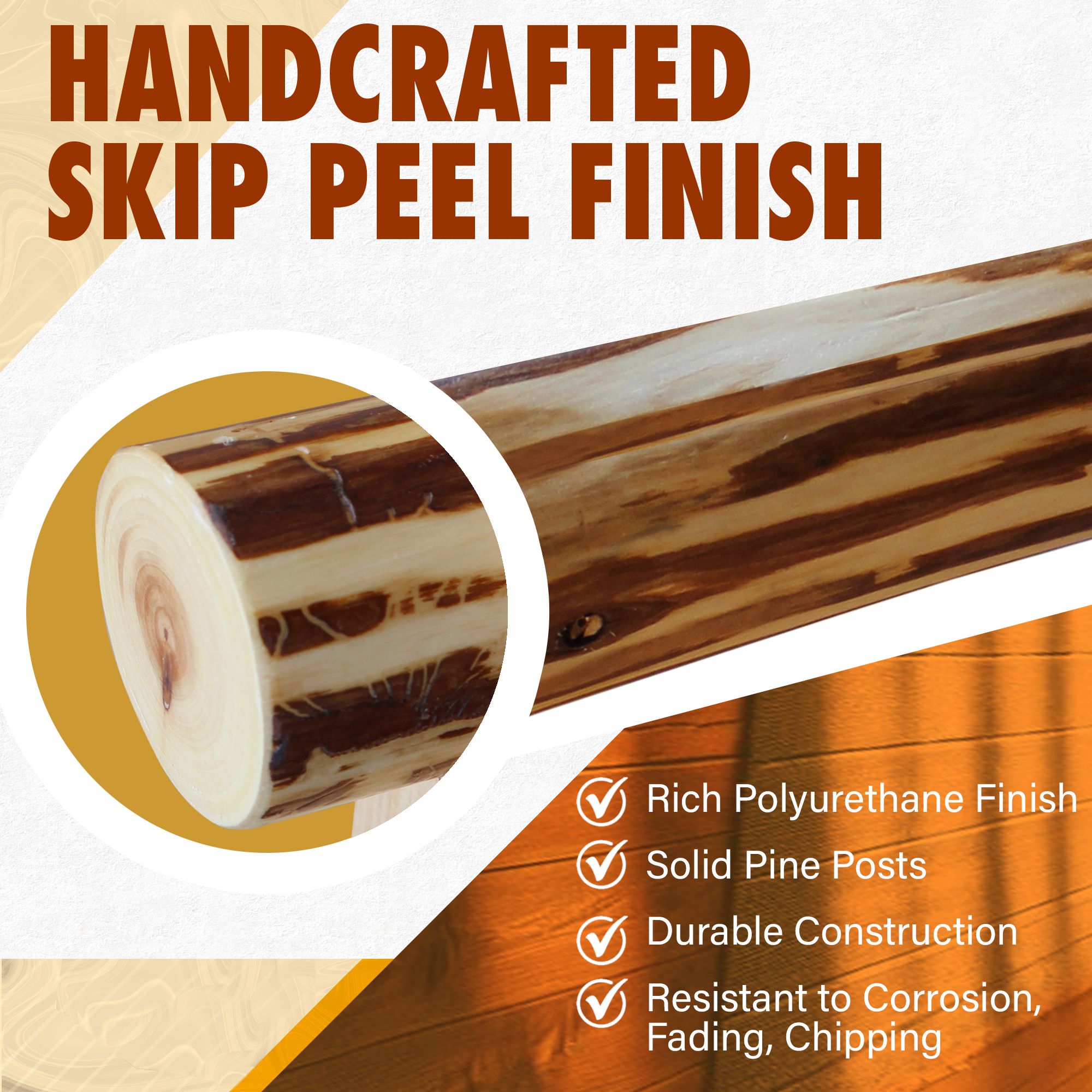 - Rustic solid pine with natural checking — adds authentic charm and character