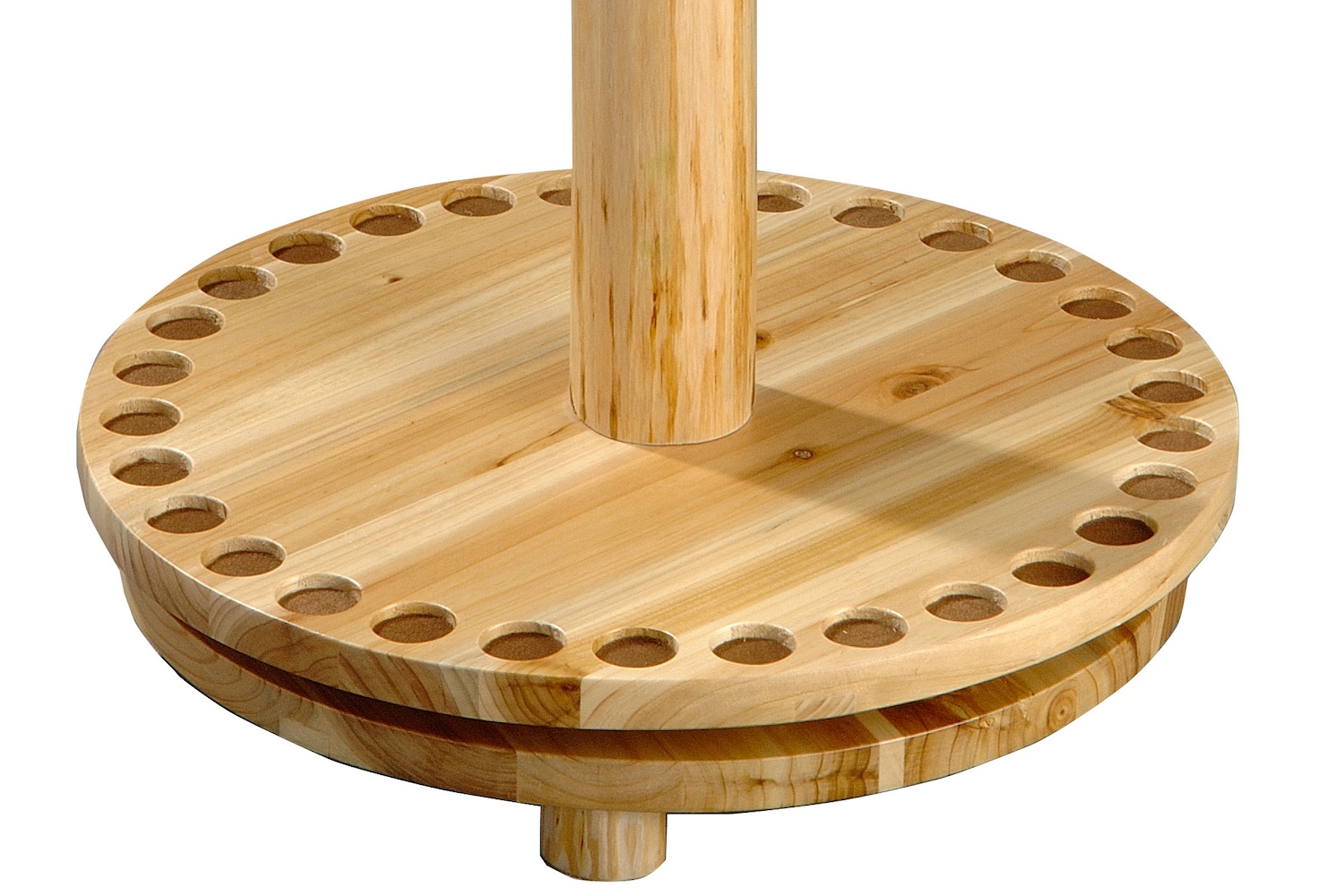 Keep your rods organized and on display with the 30-Rod Rotating Fishing Rod Storage Rack with Dual-Rod Clips. Its compact, rotating design offers easy 360° access, while felt-lined insets, rubber grips, and evenly spaced holders protect your gear from slips and damage. Finished with a rustic skip-peeled style, it’s as functional as it is eye-catching.