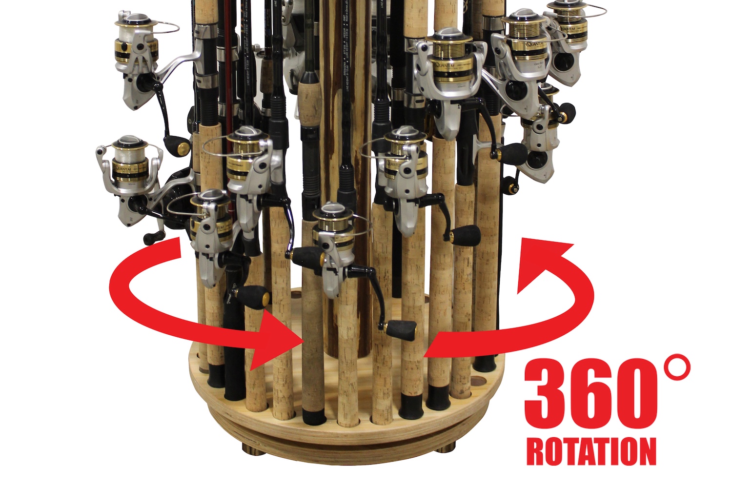 - 360° spinning design — saves space while giving easy access to every rod